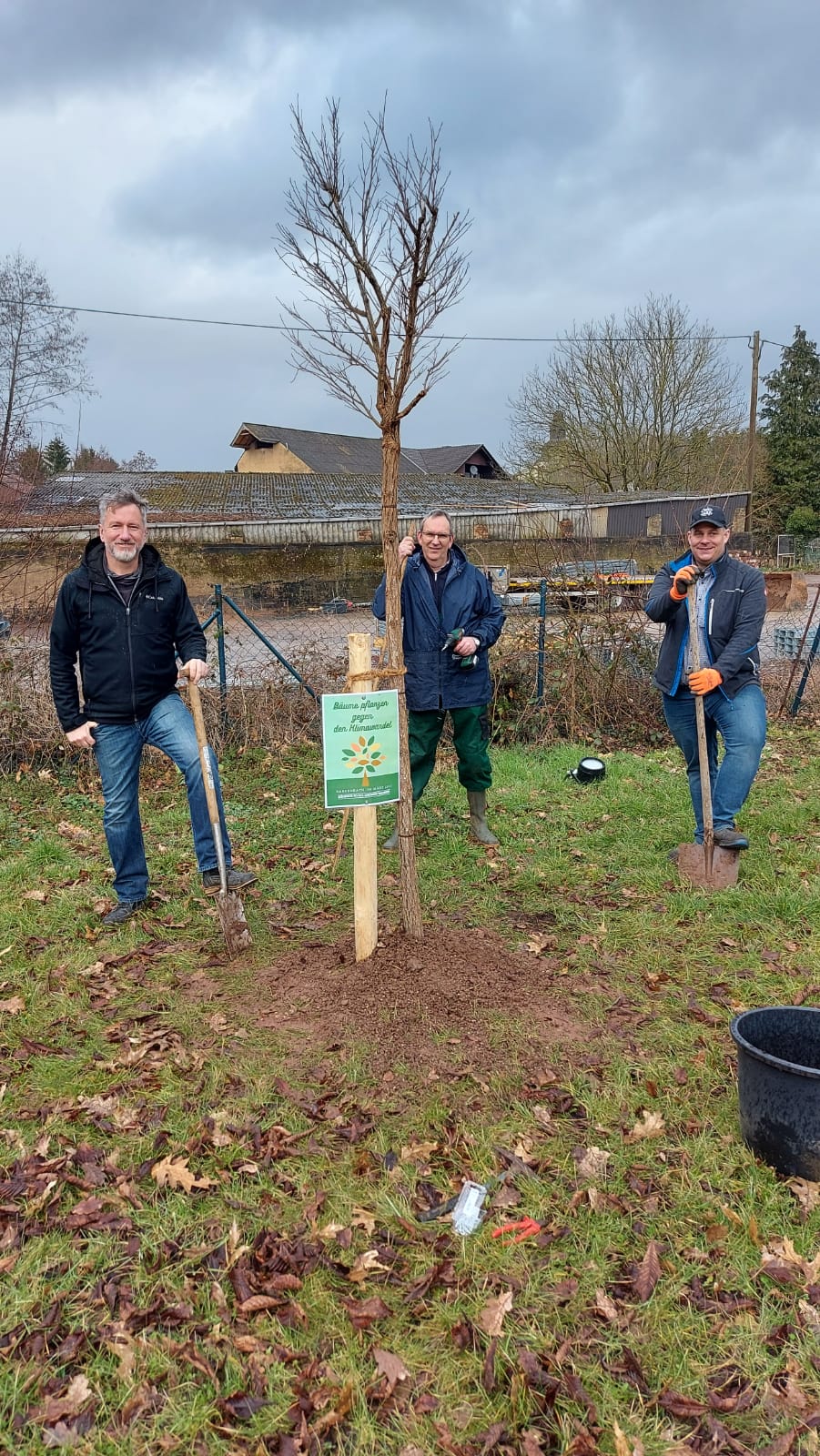 Unter dem Motto ‚Bäume pflanzen gegen den Klimawandel‘ ist der Stadtverband von Bündnis 90/Die Grünen seit einigen Jahren dabei, Bäume in den einzelnen Stadtteilen der Stadt Wadern zu setzen. Am Samstag, 13. März waren die beiden Mitglieder der Grünen Stadtratsfraktion Peter Rohles und Volker Morbe zu Besuch in Bardenbach, um dort gemeinsam mit dem Ortsvorsteher Christian Ritz eine von ihnen gespendete stattliche Kugelesche auf dem Spielplatz am Bürgerhaus zu pflanzen.